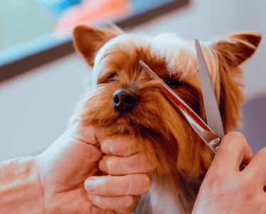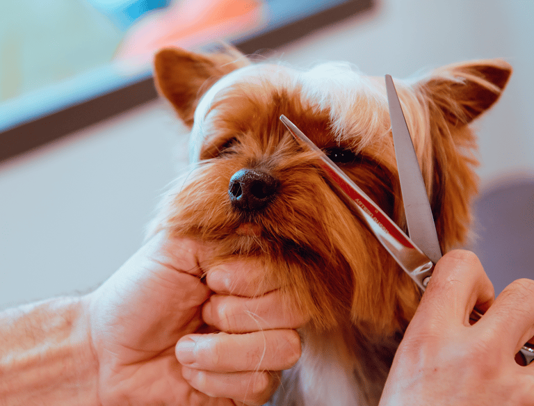 The Full Grooming service offers a complete makeover with a tailored haircut, deep-cleaning shampoo, blow-dry, tooth brushing, perfume, gland expression, nail cutting, and a stylish bandana to top it off.